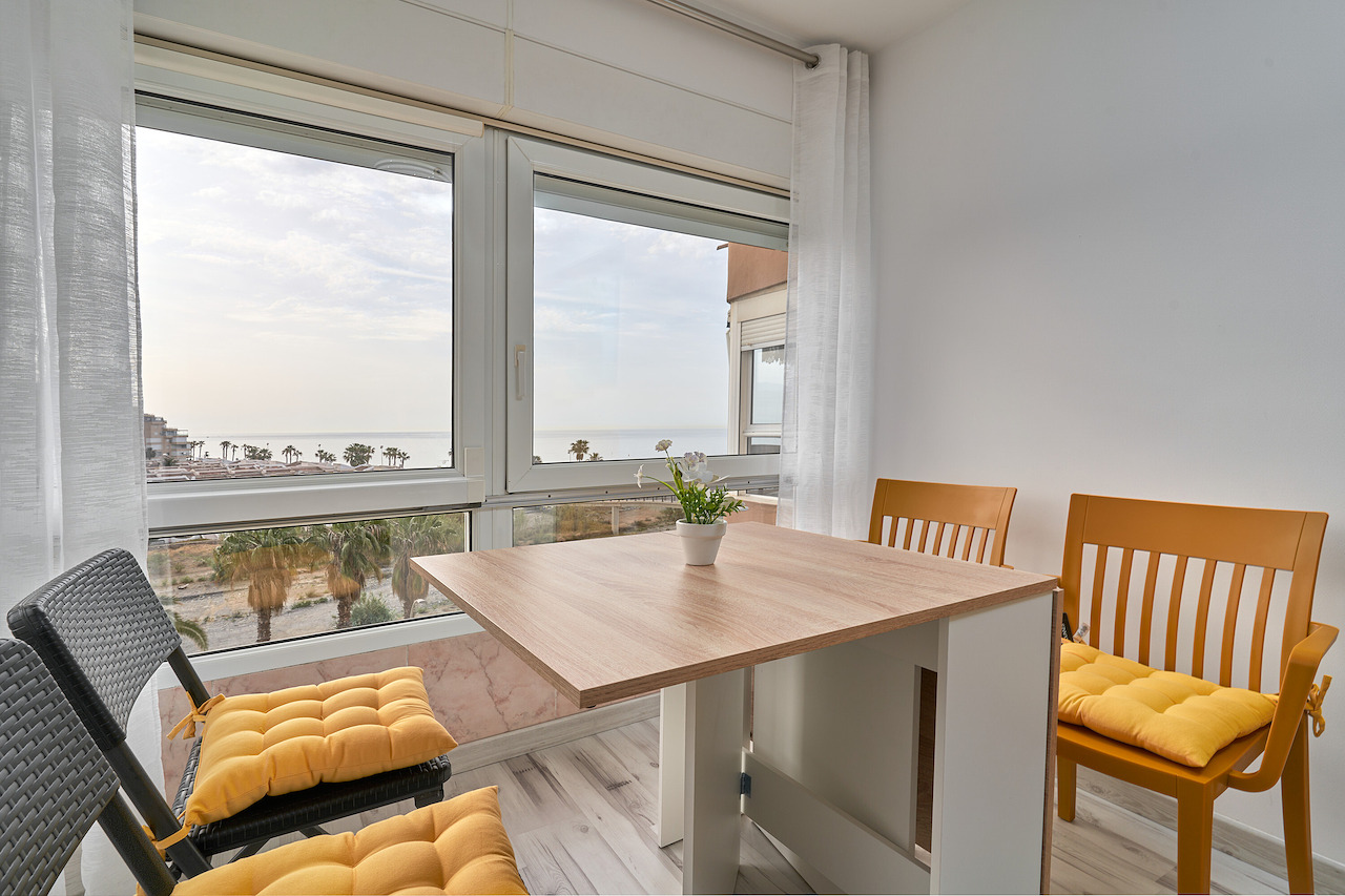 Nuestro estudio se diferencia de los demas por su reciente reforma, mobiliario nuevo, limpieza, gran luminosidad, tranquilidad y vistas al mar y a la sierra, situado a pie de playa, contando con bonitas zonas ajardinadas y todas las comodidades que usted necesita. Nuestro bonito estudio se encuentra situado directamente en la playa de Algarrobo-Costa con orientación Este, a solo 3 km de Torre del Mar. Dispone de dos pistas de tenis de uso gratuito para su disfrute y una gran piscina con una parte separada para niños, contando la de adultos con distinta profundidad. Si lo prefiere visite lugares cercanos como Torre del Mar, Frigiliana, Nerja, la Costa Tropical o el propio Málaga. Existe una amplia variedad de restaurantes cercanos donde podrá degustar nuestra amplia gastronomía o si lo prefiere cuenta con grandes supermercados muy próximos. Nuestros servicios de ropa de cama, toallas y limpieza están incluidos. Disponiendo de todas las comodidades que usted necesita: aire acondicionado, smart TV, wifi, cocina nueva con todo lo necesario, incluyendo lavavajillas, frigorífico combi, placa de inducción, horno-microondas, etc. Incluye cama doble de 1,35 y sofá cama de dos plazas. Máximo 4 personas. El edificio dispone de tres ascensores. No se admiten mascotas y no se permite fumadores. Para saber mas visite la página El Lugar